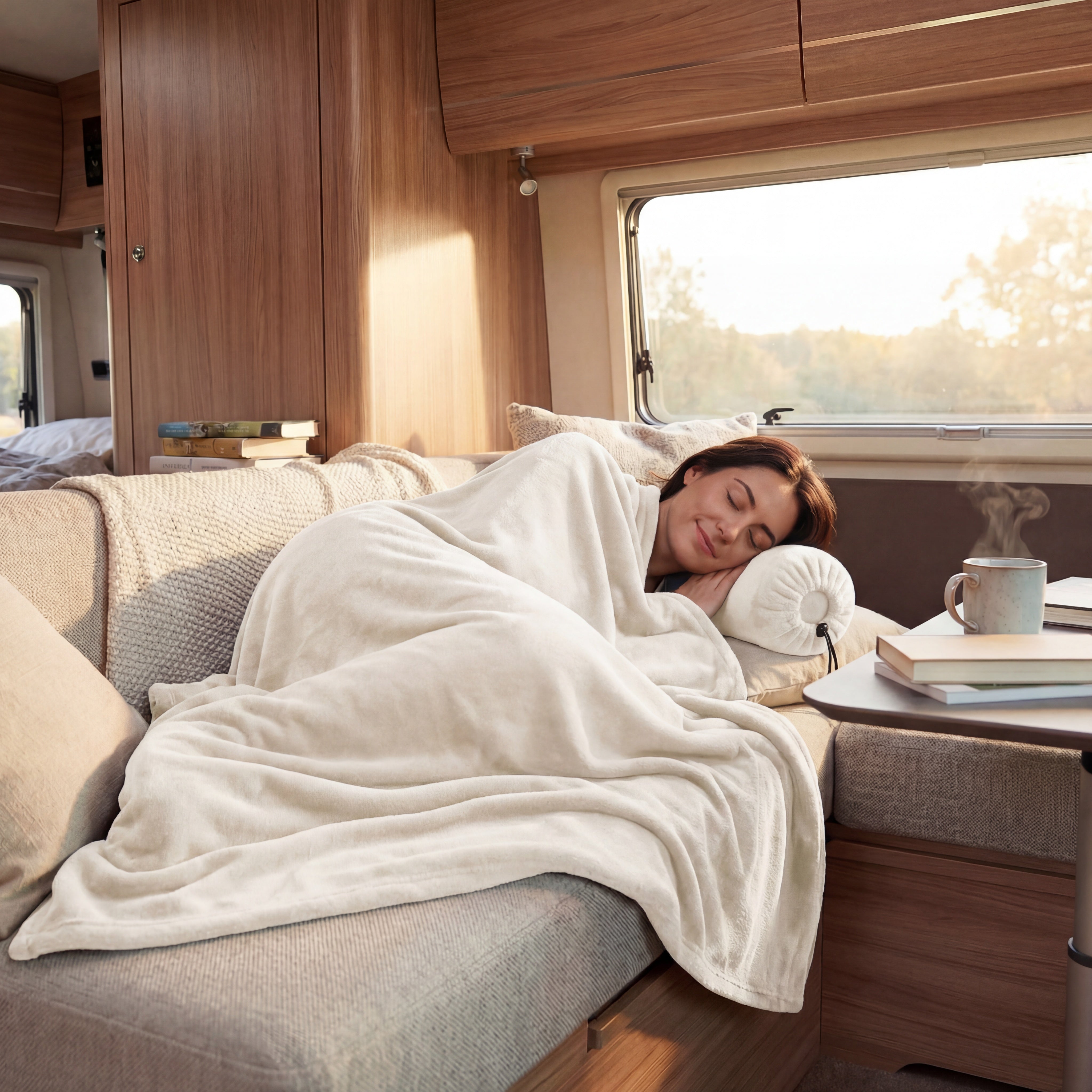 Reisedecke 150 x 200 cm mit Fleece-Beutel - Beige