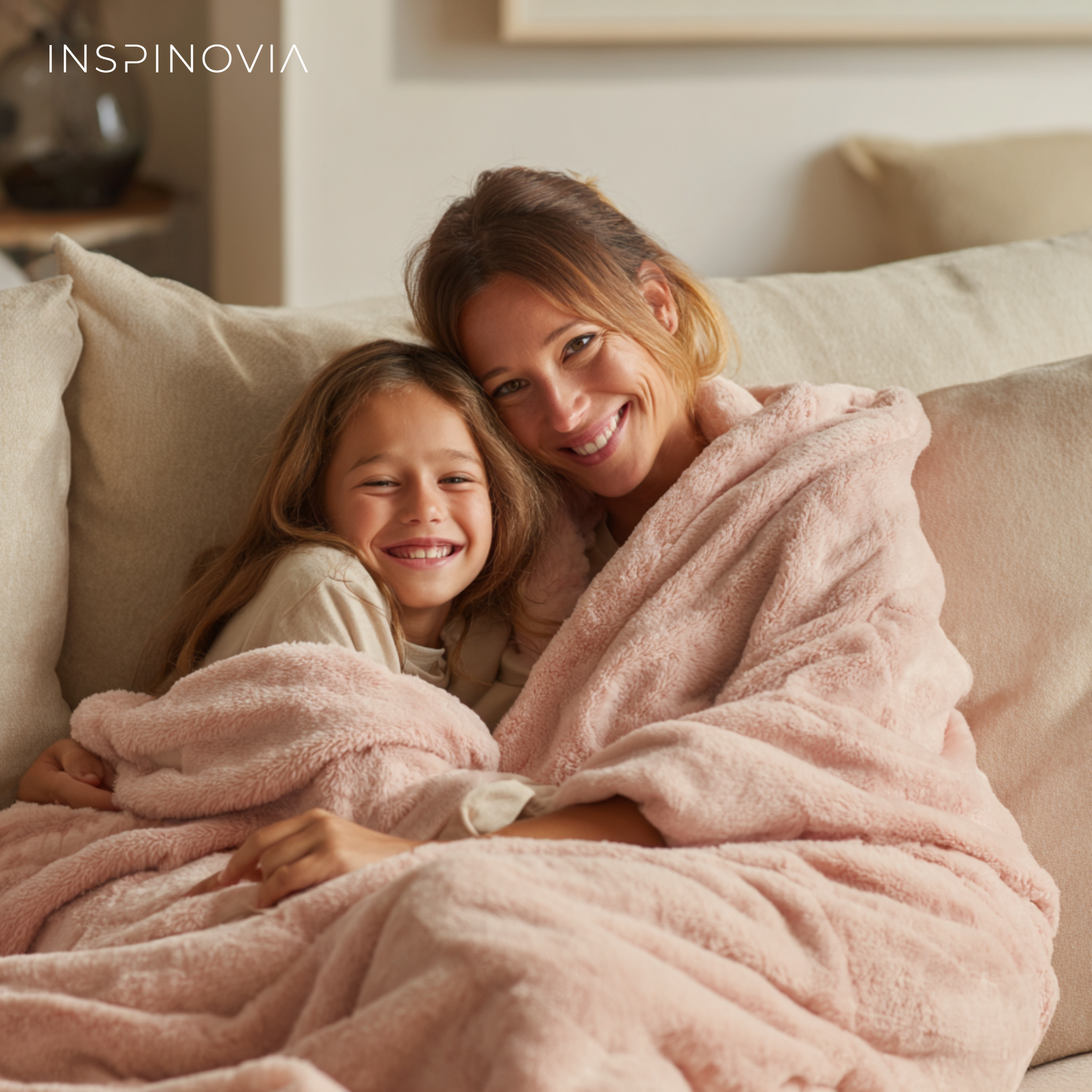 Reisedecke 150 x 200 cm mit Fleece-Beutel - Hellrosa